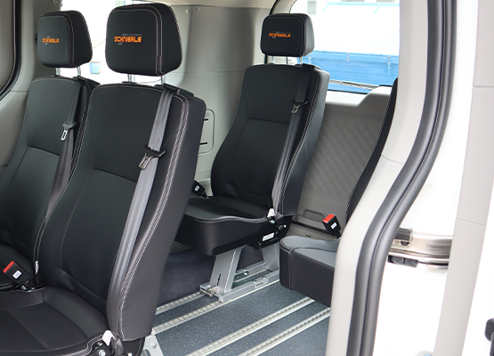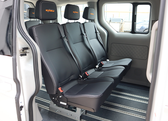 Mit unseren hochwertigen Flexus2 Sitzen sind Sie jederzeit komfortabel unterwegs. Diese Variante vereint Alltagstauglichkeit mit hohem Anspruch. Unsere fünf Flexus2 Sitze bieten maximalen Komfort und außergewöhnliche Flexibilität: Dank des innovativen Fußsystems in Kombination mit dem integrierten Schienensystem lassen sich die Sitze individuell und mühelos verschieben. Bei Bedarf können sie zudem schnell und unkompliziert herausgenommen werden. So passt sich Ihr Fahrzeug jederzeit flexibel an Ihre Anforderungen an – ganz gleich, ob für den Personentransport, Geschäftsreisen oder zusätzlichen Stauraum.