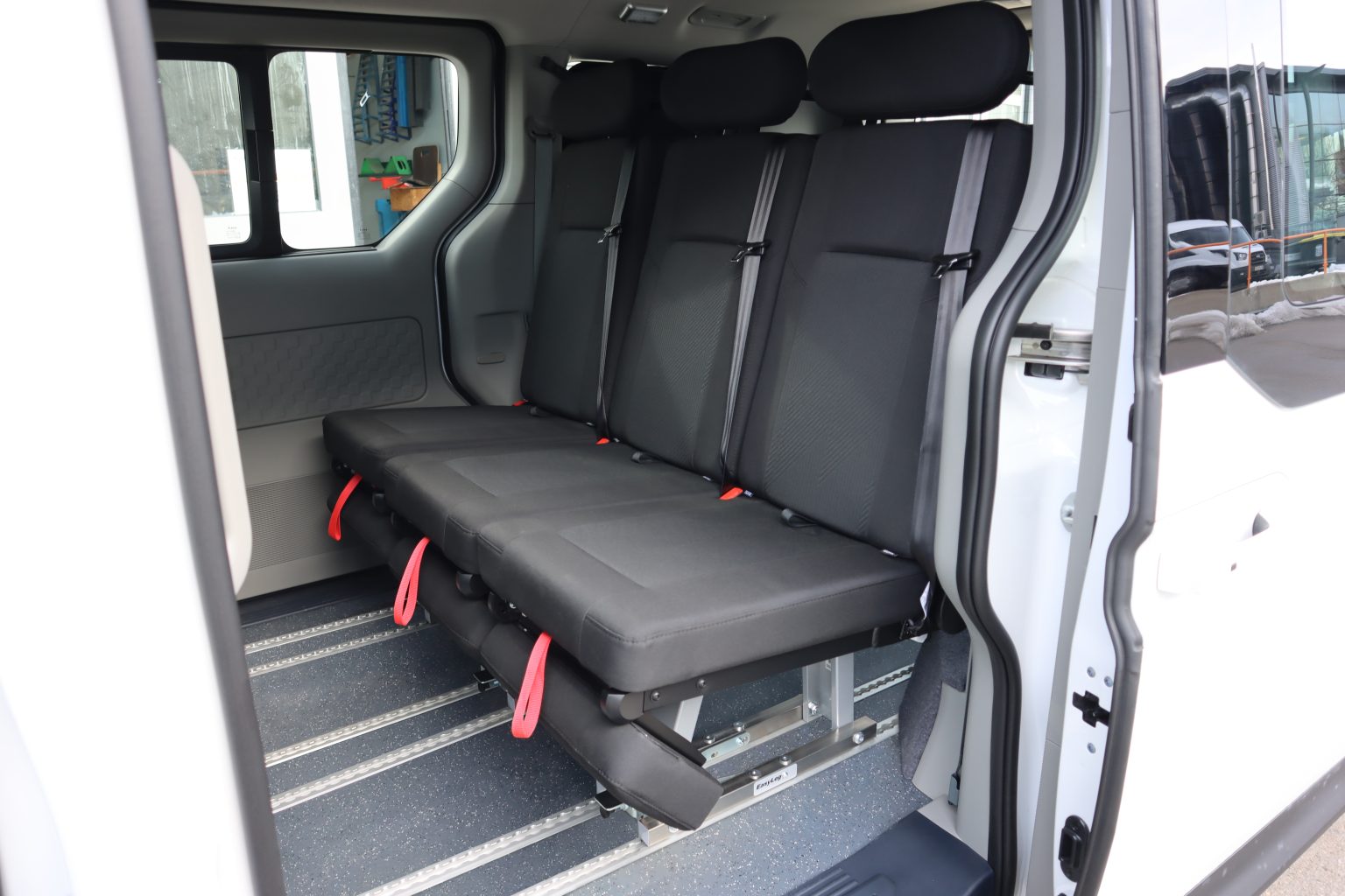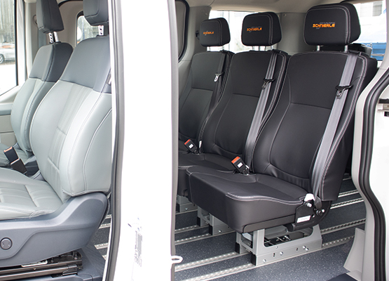 Die Flexus2-Klappsitze sind flexibel positionierbar, bei Bedarf komplett herausnehmbar und einfach zusammenklappbar.